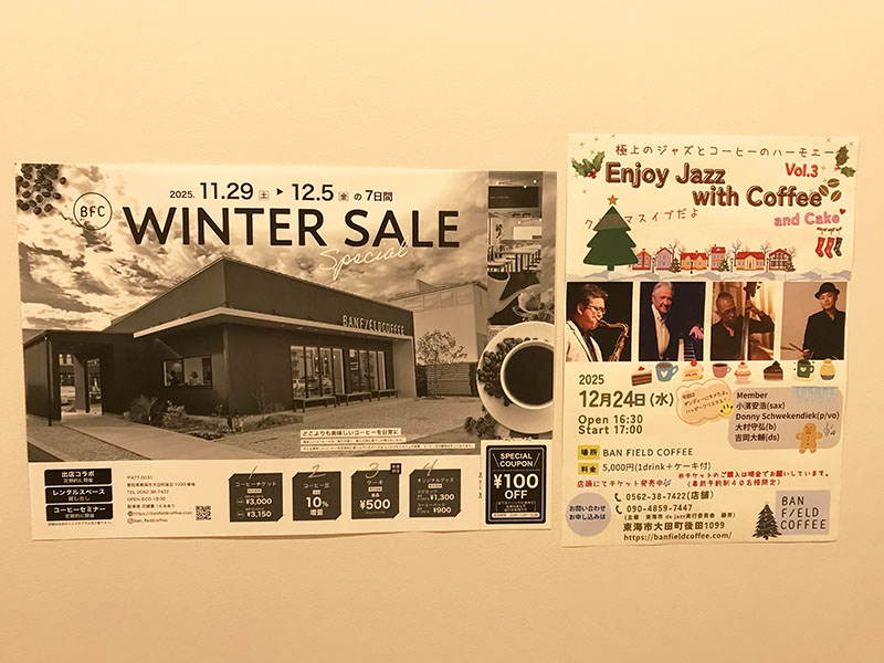 愛知県東海市の東海市芸術劇場でのライブの前にお昼にしようと探してみたところ、歩いて行けそうな場所にBAN FIELD COFFEEさんがありました。近くに他のカフェがないようなので、行ってみることにしました。