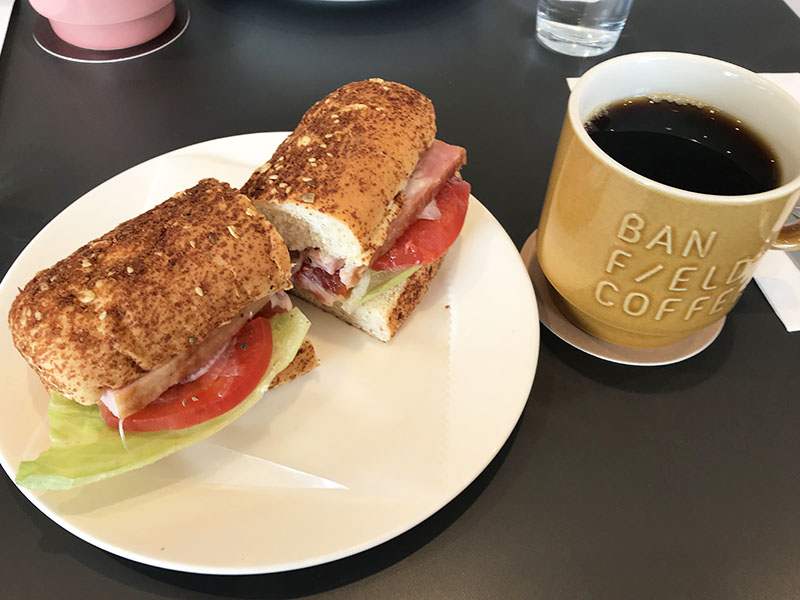 本日のおすすめサンドイッチとベーコンサンドとコーヒーのセットを注文。