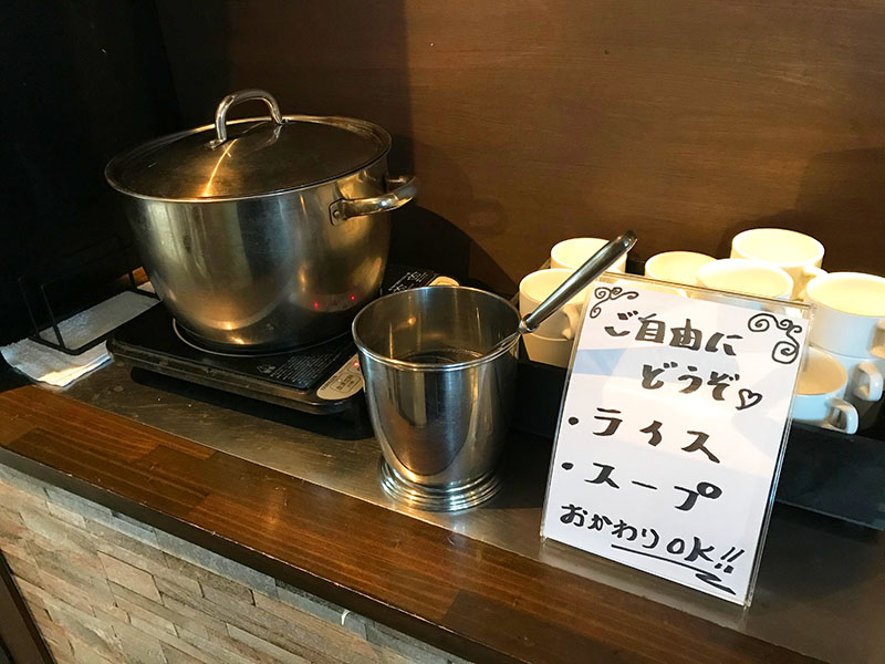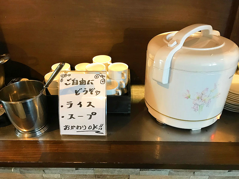 こちらはスープとライスのコーナーです。すぐ隣にサラダバーがあります。