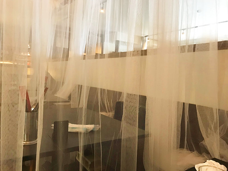 客席には隣の席との間に薄いカーテンがあり、プライベート感があって落ち着きます。